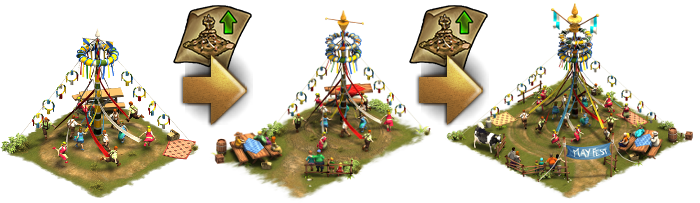 Ci sono versioni aggiornate di Il Re e la Regina che sono ottenibili come premio finale per il completando missioni di Madame Fortuna. Il terzo edificio verrà automaticamente aggiunto all'inventario del giocatore il 24.